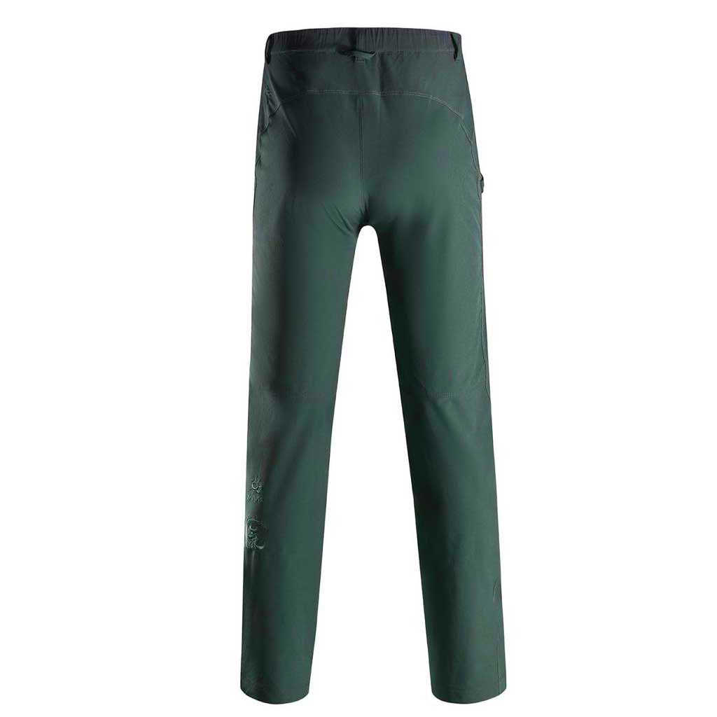 The KAILAS 9A Stretchy men's pants are designed specifically for climbing. Every detail is designed for your comfort. They are made of soft, breathable fabric with excellent stretch. The loose fit and articulated knees allow for unrestricted movement while working. The elastic waistband fastens with a button and Velcro. Loops on the outside of the pants allow for a three-quarter-length adjustment. The back of the waistband features a loop for a chalk bag. Two mesh side pockets provide excellent ventilation.