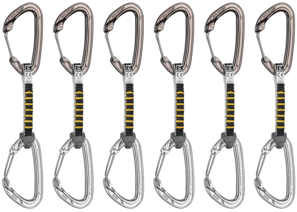 Very light quickdraw for alpine climbing, with innovative EVO Wire anti-snag system.