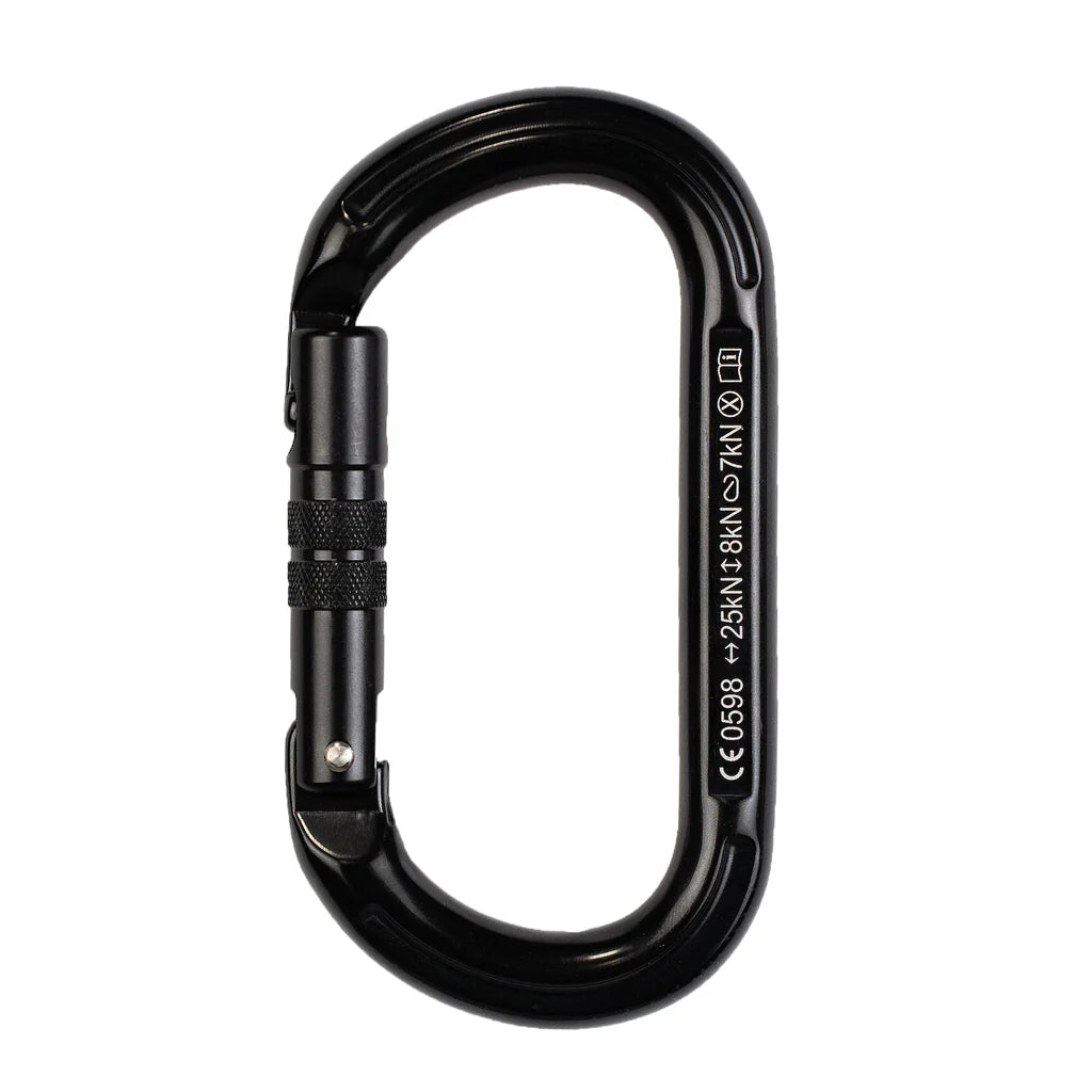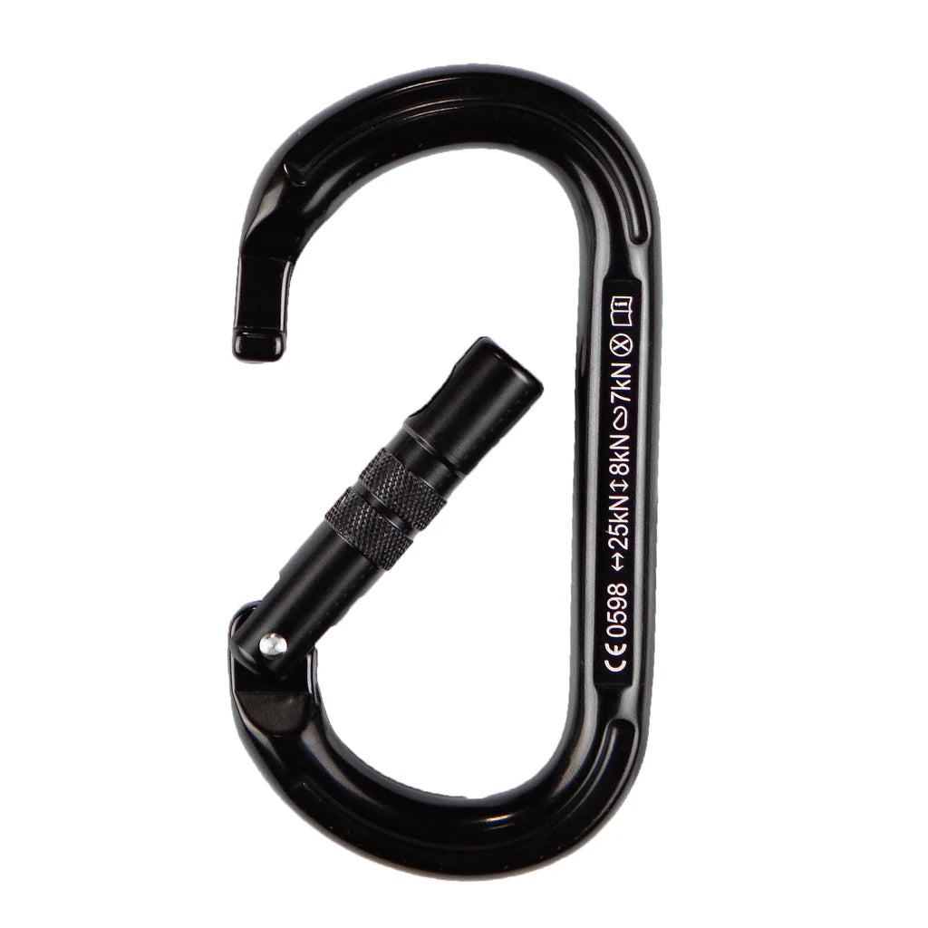 A multipurpose carabiner that can be used to gather nuts, cams, and other gear into one place while climbing. Works well under load because of the symmetrical pull in all orientations.